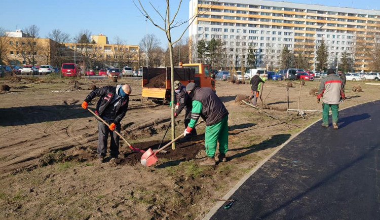 Nyní se plocha starého parkoviště u Jiřetínské ulice mění na zelenou plochu, která bude součástí parku. Zároveň budou probíhat práce na terénních úpravách zhruba na 5000 metrech čtverečných a výsadba dalších celkem 80 listnatých stromů. Vysazeny budou platany, duby a buky. Teď vysazuje Praha 9 prvních zhruba padesát stromů.
