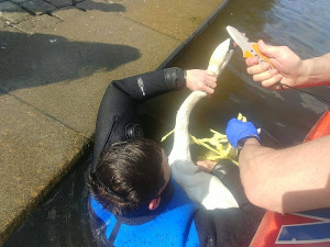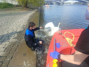 Městští policisté včera během dne vyjížděli k netradičnímu zásahu. Pražští strážníci z Poříčního útvaru vysvobodili labuť, která měla krk i nohy zamotané do igelitu. Naposled lidé potrápili labutě při silvestrovských oslavách, kdy kvůli velkému hluku, který způsobila pyrotechnika, bylo zraněno šest labutí a jedna zemřela.