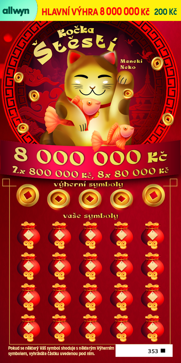 Dá se zvolit také zcela opačný přístup a počkat na Mezinárodní den štěstí, který každoročně připadá na 20. března. S tímto dnem je spojený los Kočka štěstí, který je inspirovaný Maneki Neko, symbolem prosperity a radosti. Jelikož v asijské kultuře symbolizuje štěstí a hojnost číslo osm, je hlavní výhra osm milionů, dvě výhry osm set tisíc a osm výher ve výši osmdesát tisíc.