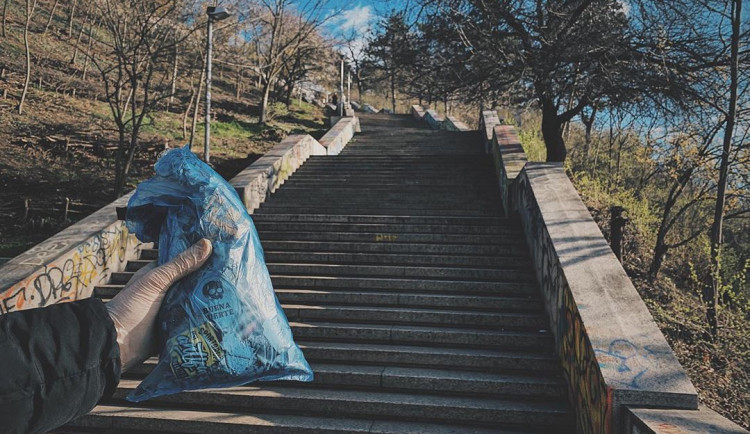 Honza vyčistil schody, které vedou na Letnou. Zaměřil se pouze na samolepky a šlo to celkem snadno. „Škrabka a pytlík na odpadky a mám hotovo! Kéž by tu teď konečně vzniklo nějaké opravdové umění,“ přeje si Honza.