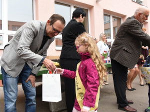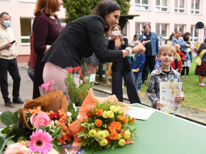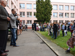 Starosta Ondřej Gros vítal malé školáky v ZŠ Ústavní. Popřál jim hodně štěstí a apeloval na řidiče, aby nejen na začátku školního roku byli na cestách opatrní.